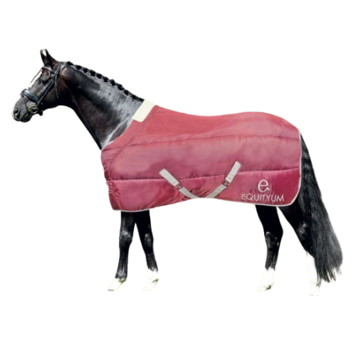 Couverture Equityum Box modèle "Iris" en tissu matelassé 150 Gr - 420 D, parfaite pour les premiers froids ou lors du changement de saison, douce et respirante, elle ne fait pas transpirer le cheval.