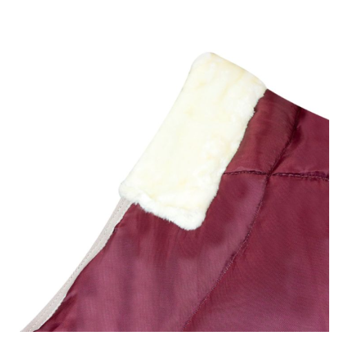 Elle est équipée de sangles croisées, de sangles sous les jambes, d'une double fermeture frontale et d'un insert en fourrure sur le garrot pour protéger le cheval des frottements et des frottements.