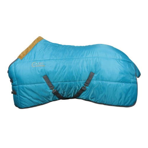 Couverture de box pour chevaux modèle "Coloured" en tissu matelassé 250 Gr - 420 D, parfaite pour les premiers froids ou lors du changement de saison, douce et respirante, elle ne fait pas transpirer le cheval.